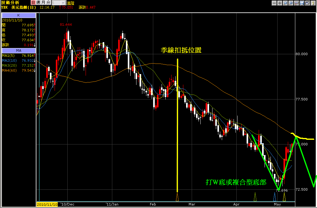 美元指數從2010年12月~2011年1月這兩個月時間作了一個頭肩頂之後