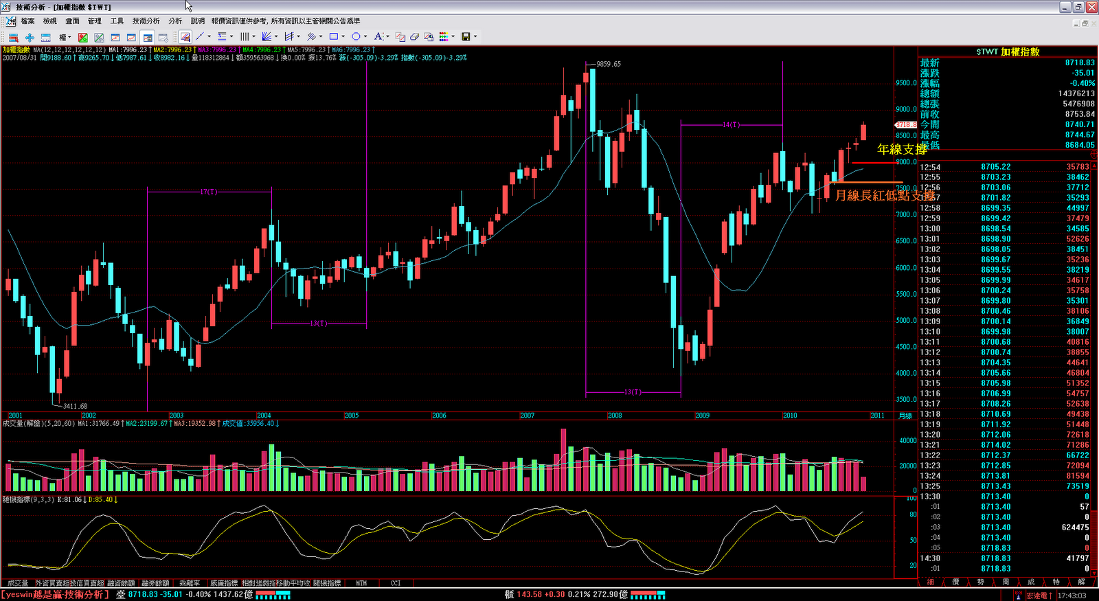 現在台股月KD只能漲不能跌