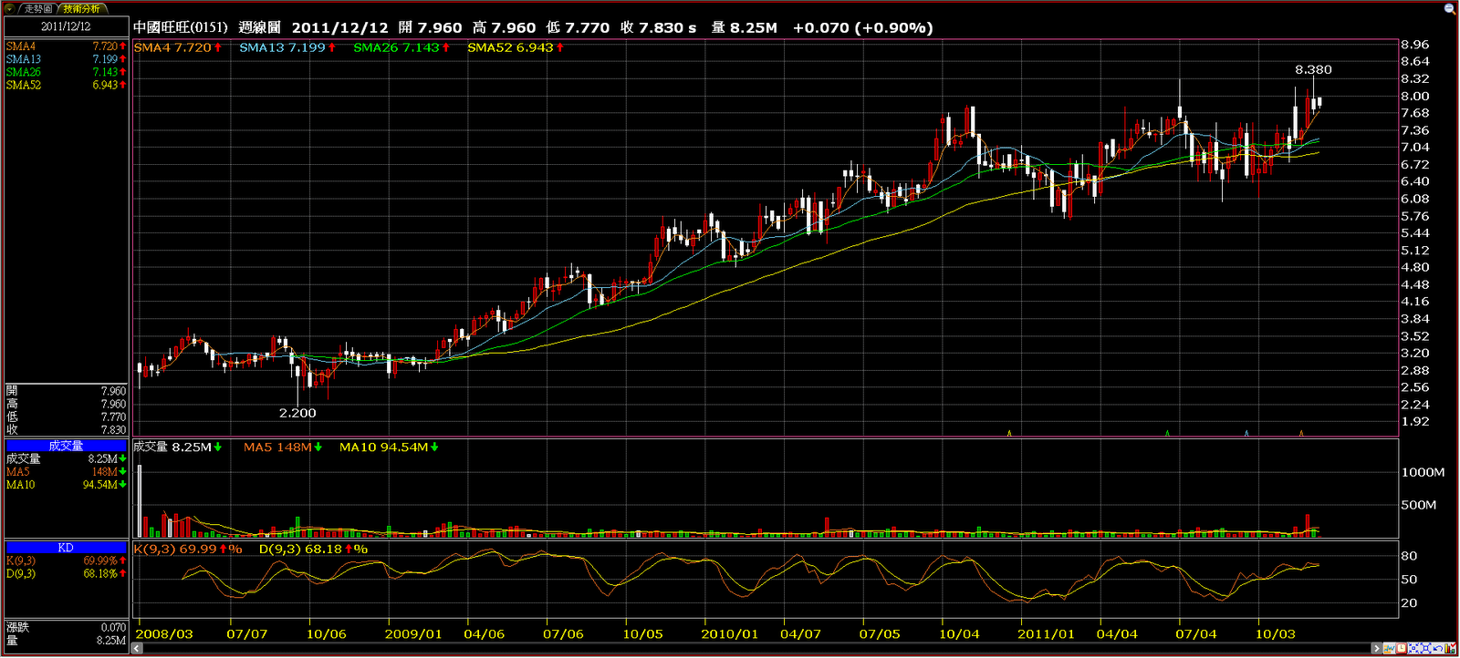 中國旺旺(0151.HK)週線圖