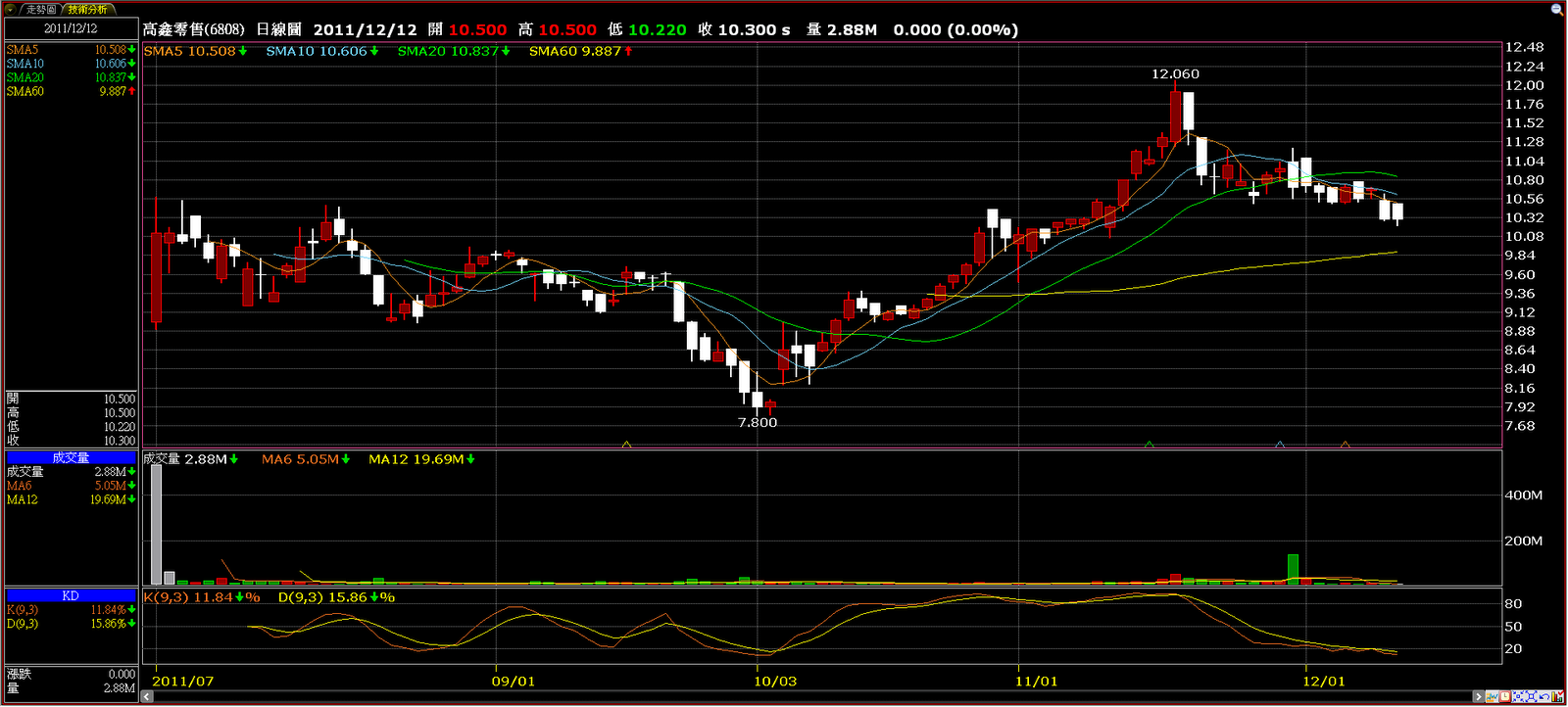 高鑫零售(6808.HK)日線圖