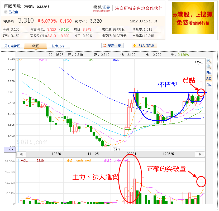 整個3月~7月這5個月就形成了一個杯把型的型態
