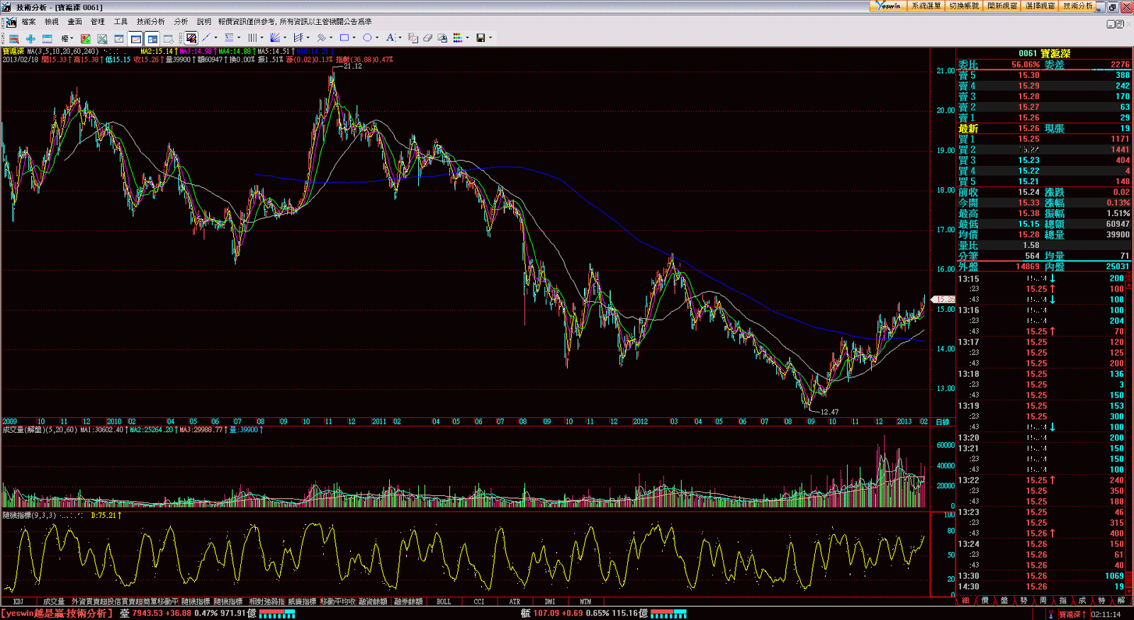 所以他沒有即時報價而是延遲15分鐘的報價