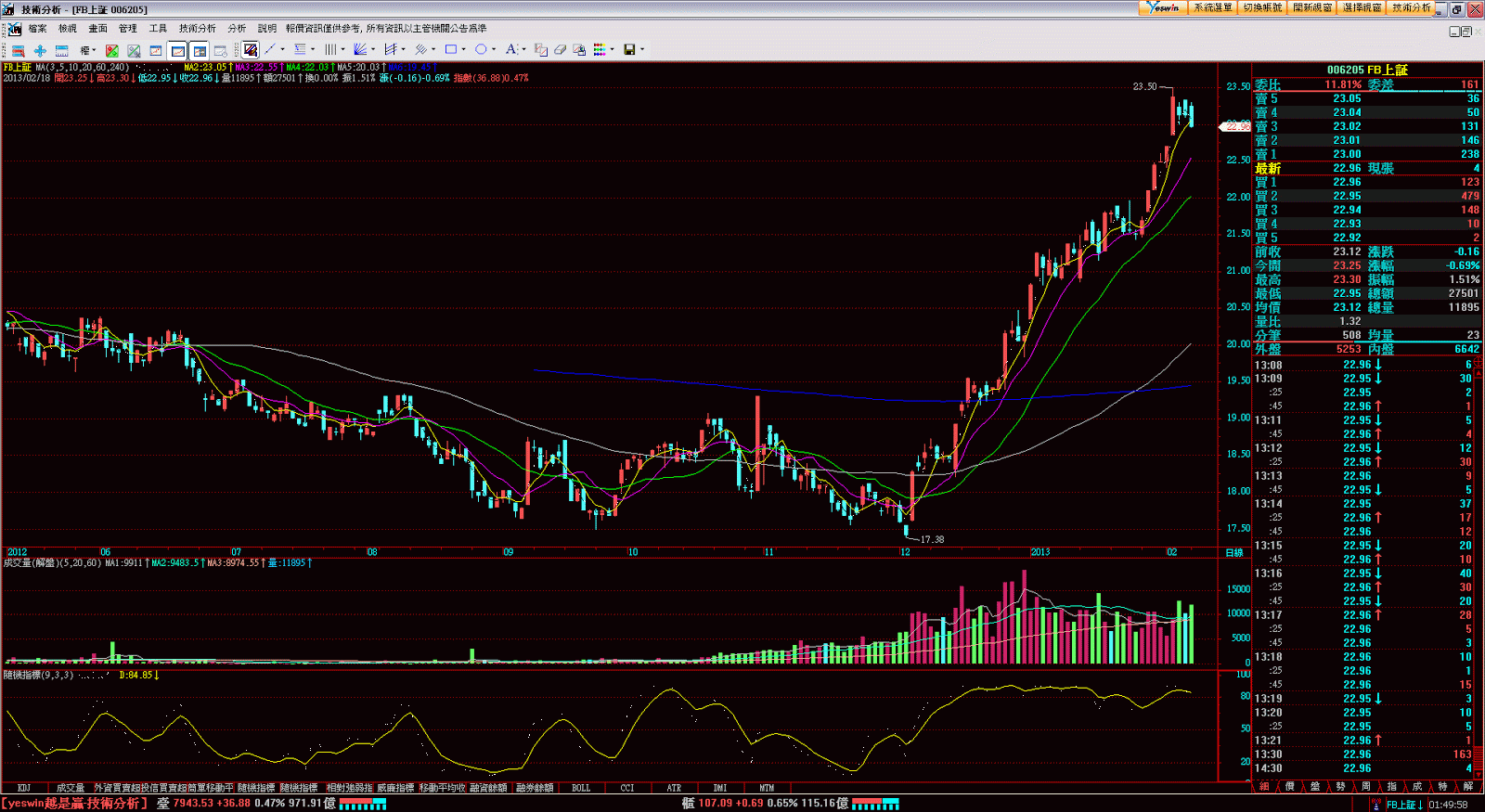 富邦的看盤軟體富邦e01目前使用的是嘉實資訊的XQ系統簡單版
