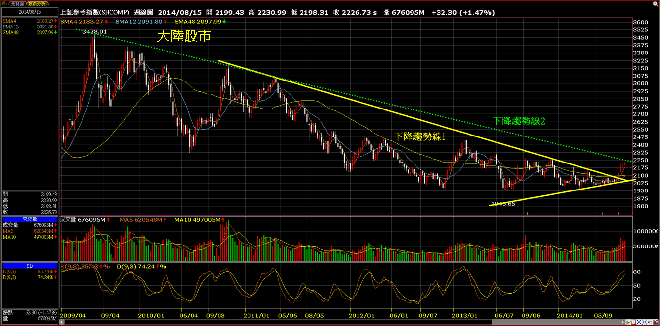 陸股的走勢已經從長期的空頭走勢開始扭轉為多頭的走勢