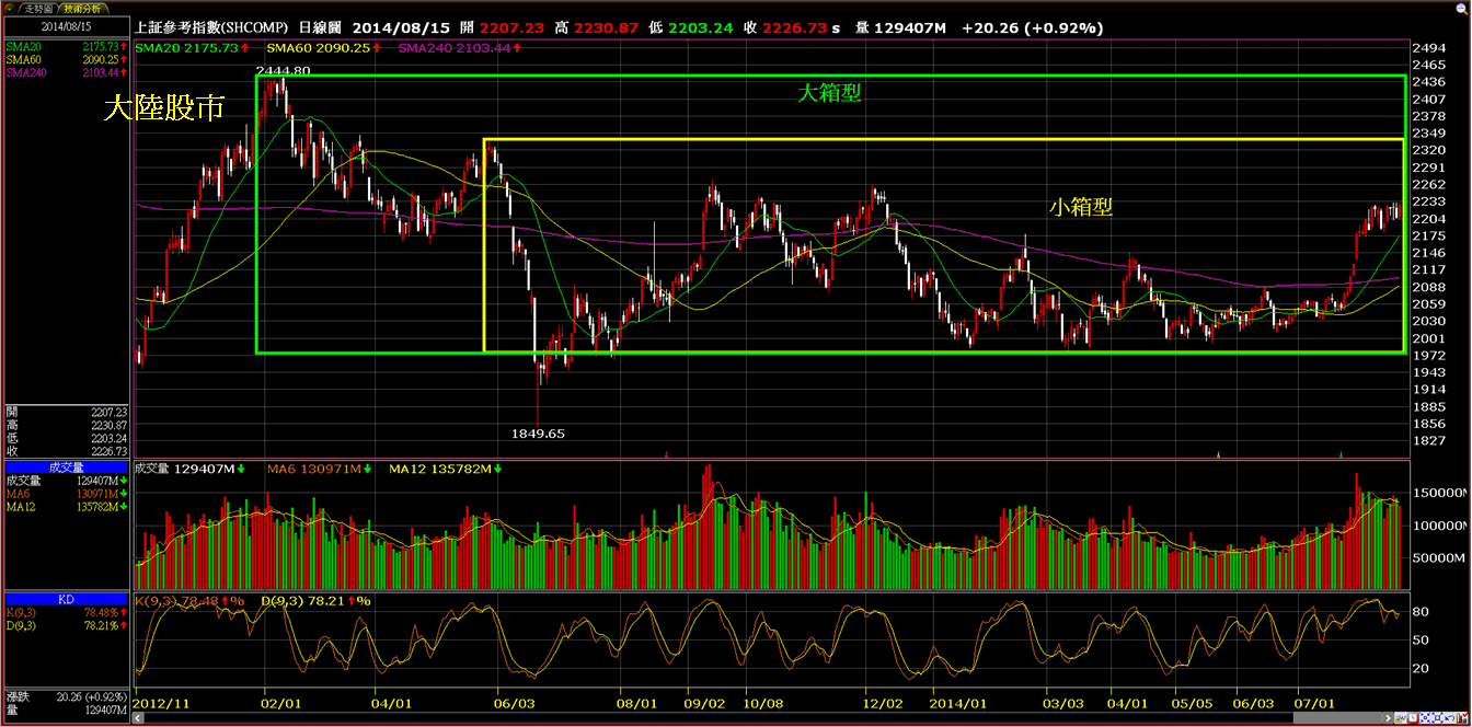 我們可以看到陸股現在還是2350點的之內的小箱型內震盪