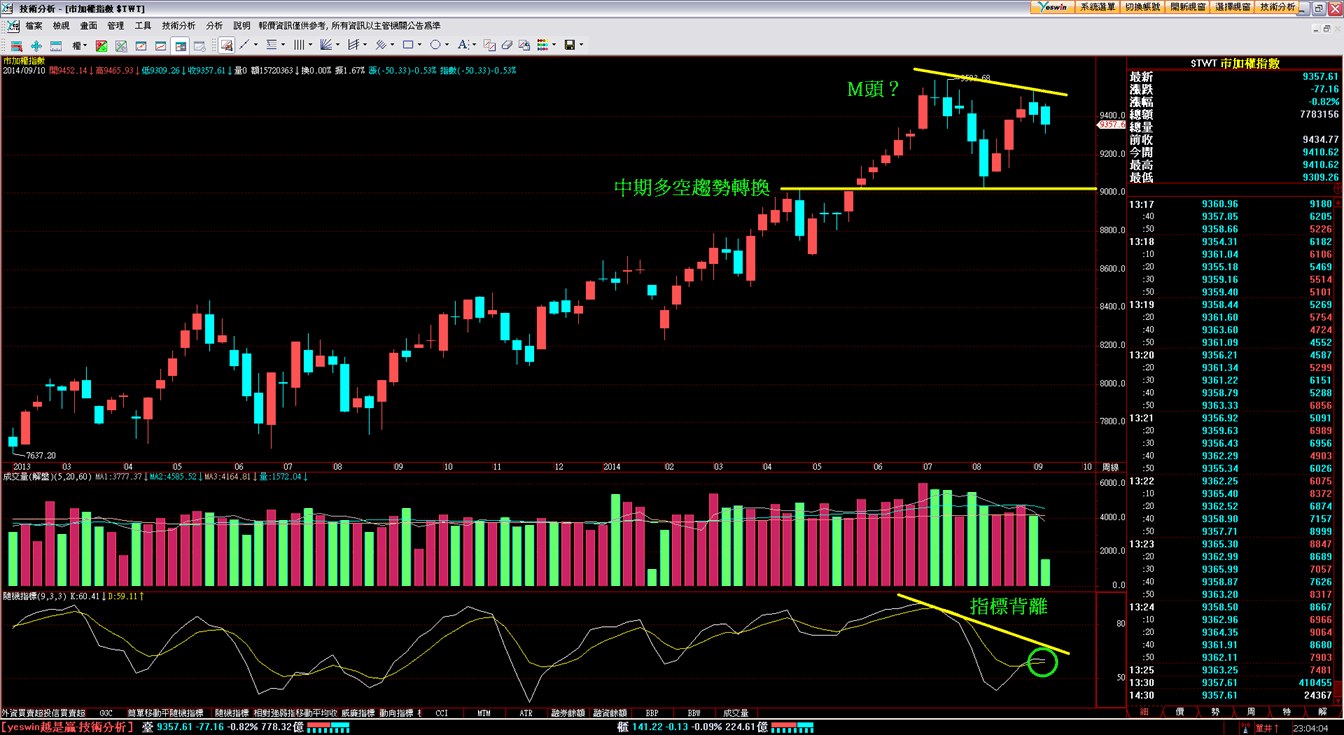 大盤短線上也果然從9200點一路的爬到9500點附近