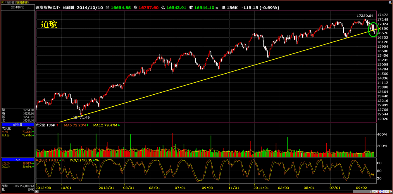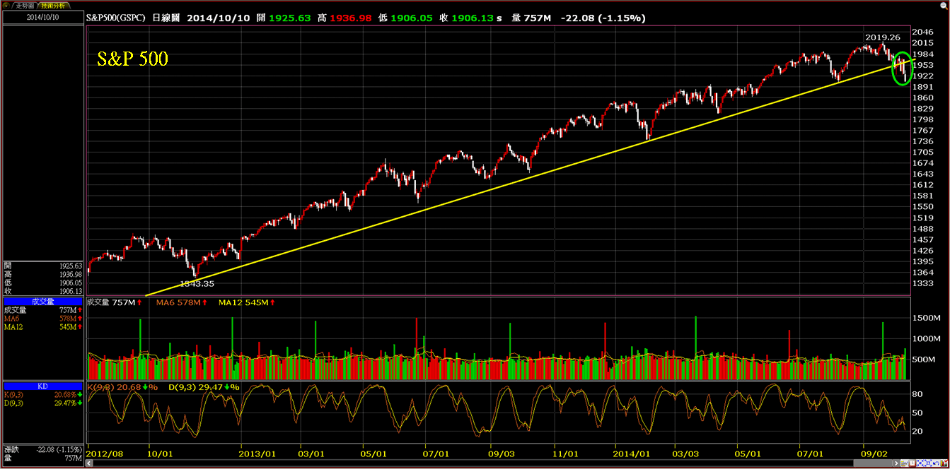 美股的四大指數終於跌破了兩年來的中長期趨勢線