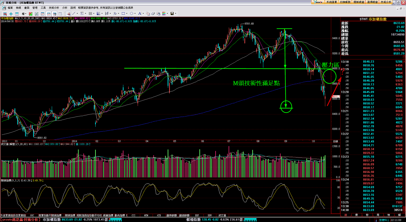 今天台股雖然收盤只下跌21點