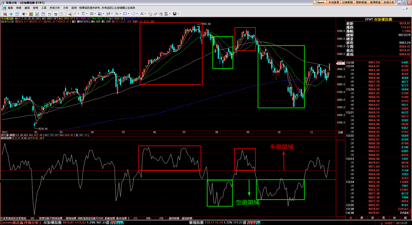 指標在紅色線以上就是多頭行情