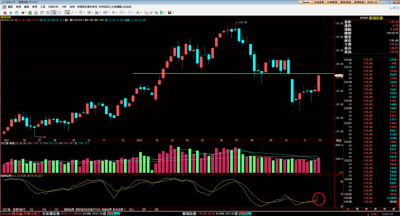 但是上櫃的指數雖然週KD金叉可是卻沒有明顯表現