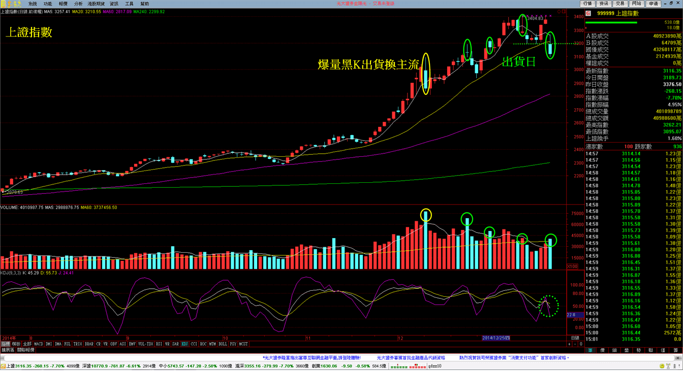 這5根出貨日除了第一根的12/9號爆天量黑K是高檔爆量換主流之外