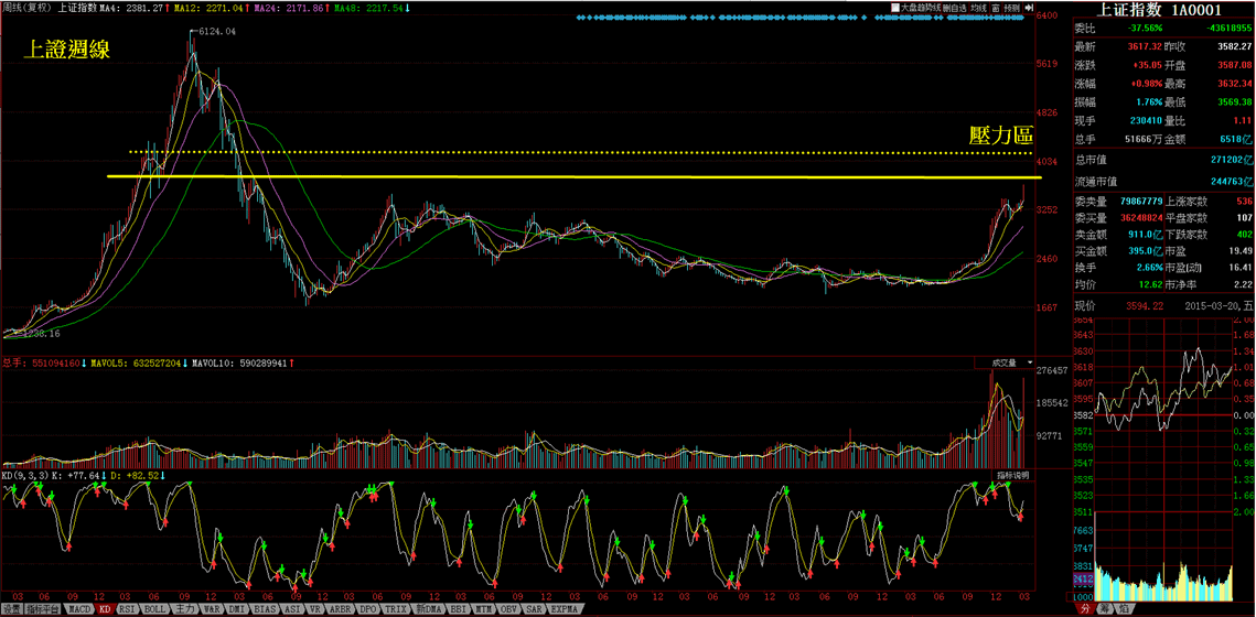 3/16上證指數又突破了1月底的波段高點3406點續創波段新高