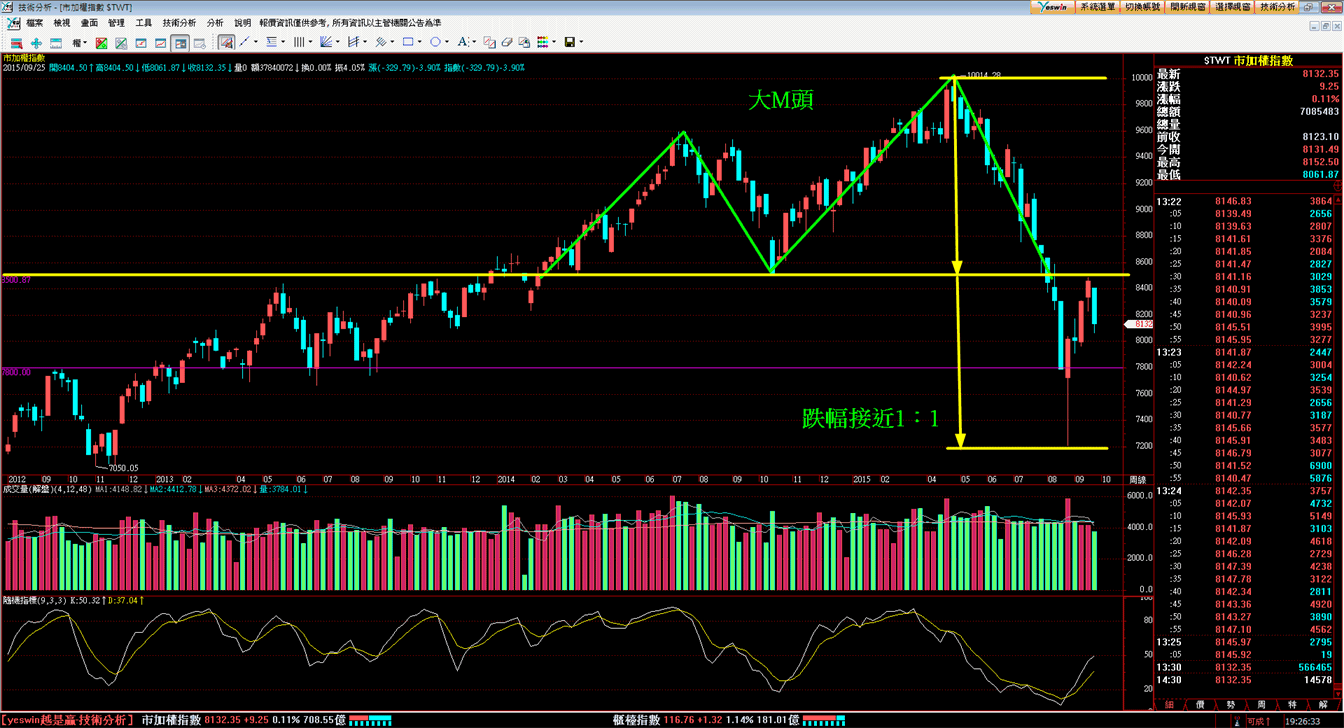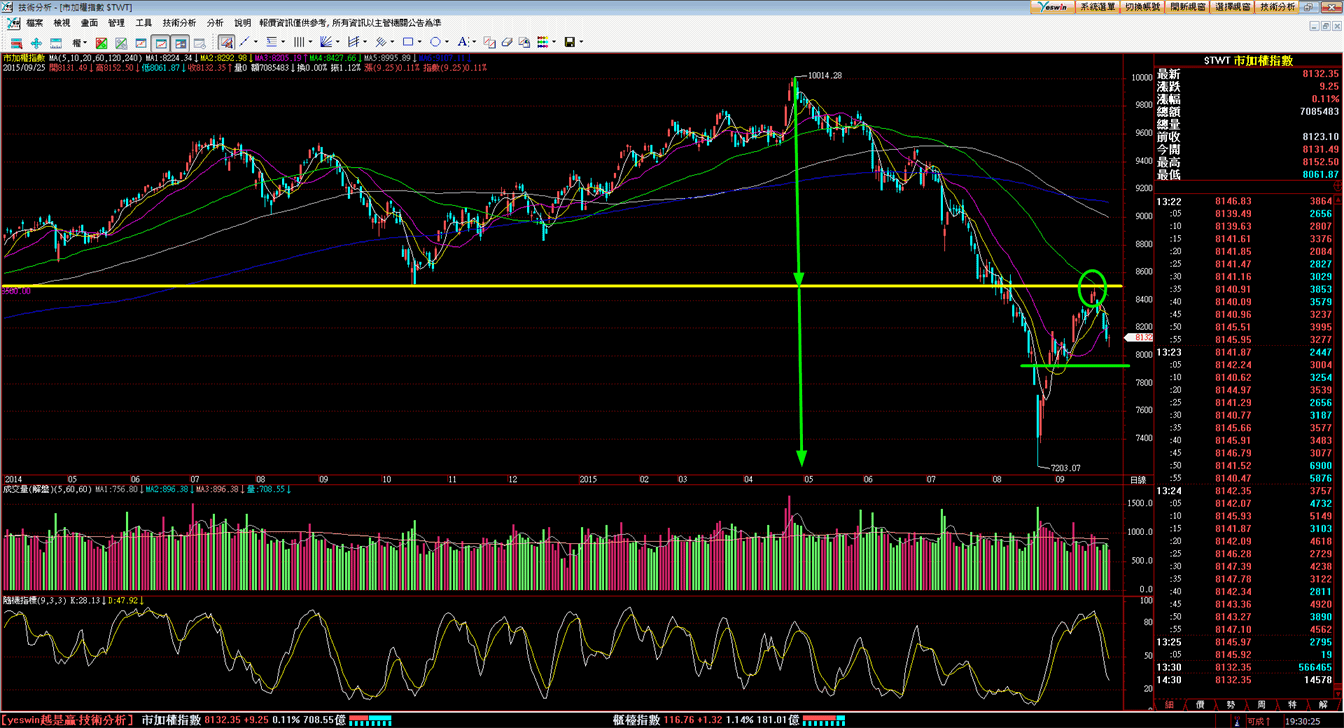 7月底正式跌破8500點之後就走了一個將近1:1的跌幅空間