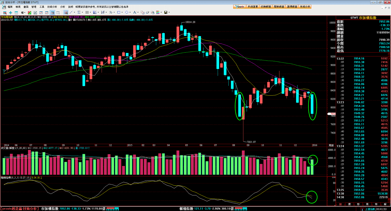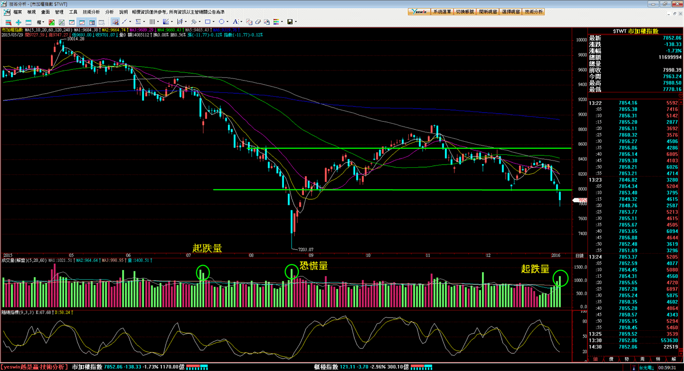 台股這四天的下跌已經形成了週線上很大的帶量中長黑