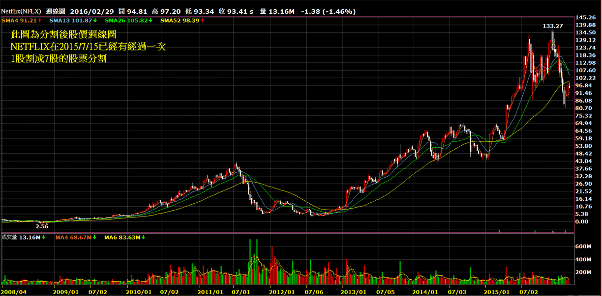 十倍股系列的第一個公司,當然是本人的最愛之一Netflix。曾經是他的用戶,也曾經是他的股東,可惜在Netflix身上也僅僅賺了一倍就賣出,還是非常可惜。我們先看一張Netflix的股價走勢圖:
