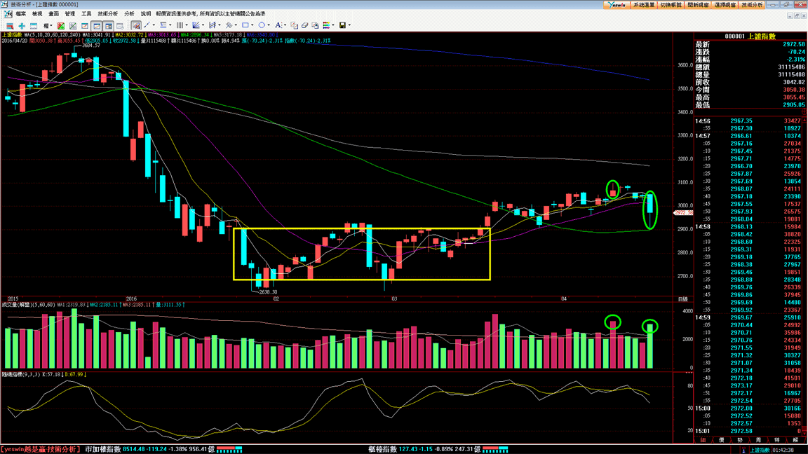 連兩天開盤大漲被硬生生的從大漲砍到下跌