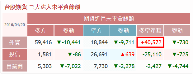 盤後5月期留倉共4萬口的淨多單