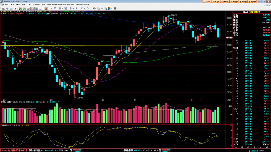 4月初從8800點一路下跌至8400多點