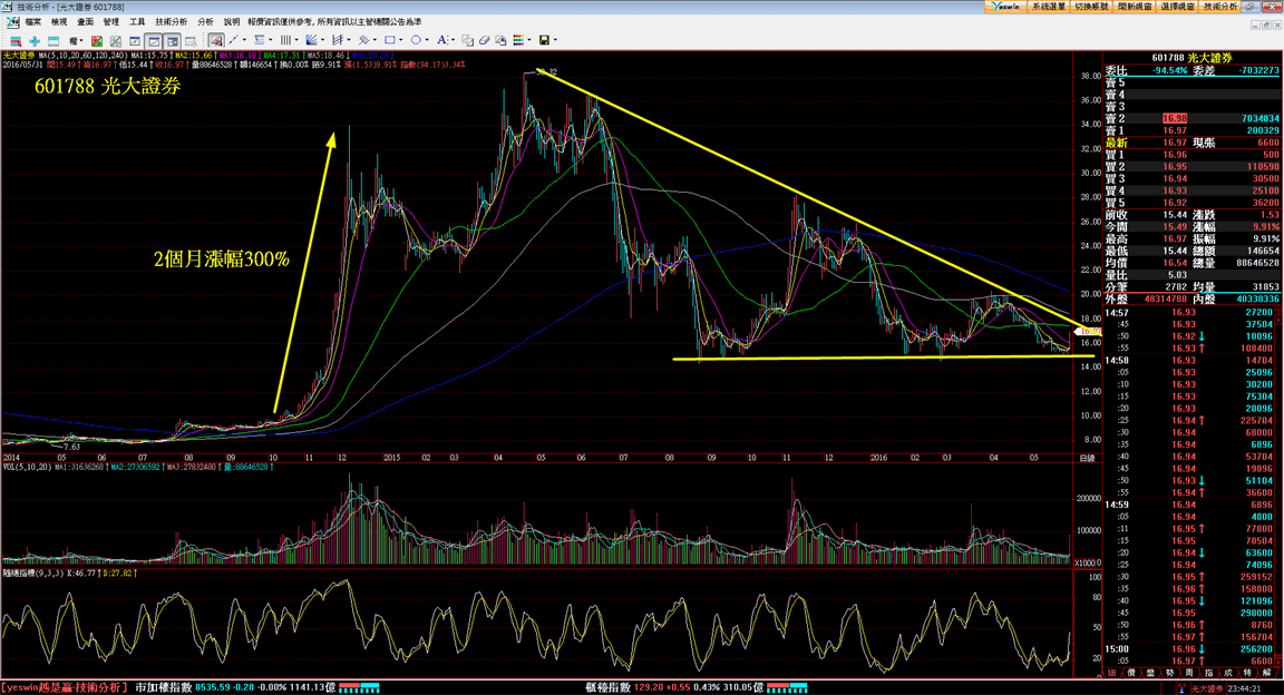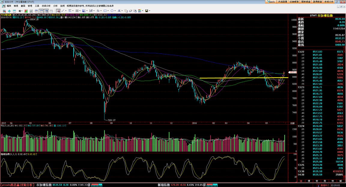 謝謝E大分享,原本還是保持空方思考,因為六月份面臨許多變數,加上如果6月中旬陸股納入MSCI將會對台股產生資金外移排擠效應,並且有英國脫歐公投,如果有脫歐->修正,沒脫歐->7月升息,本來單純就消息面我是這樣判斷,但據E大說明後發現技術分析說的是另外一件事,讓我思考了還是不能當死空頭,避免受到重傷。