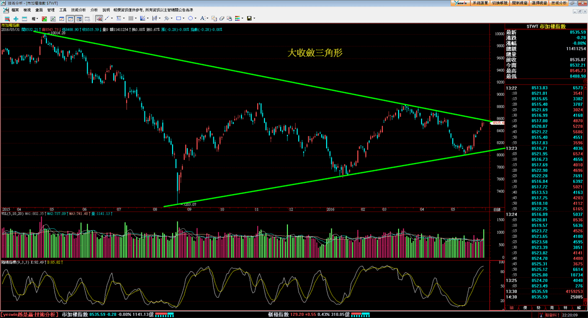 感謝版主的分析,但台股三角收斂型態最後的結果也是有可能向下突破,謹慎操作者可待型態做出表態再進場不遲。