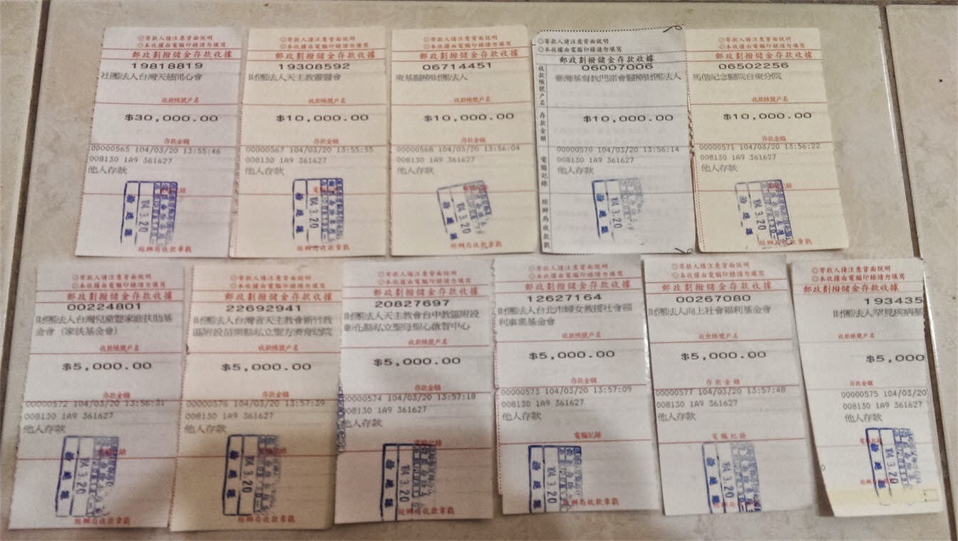 今天總共捐了100000元給下列各個單位