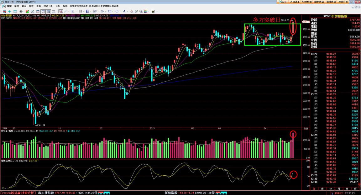 不僅盤中突破3月底的前高9775點