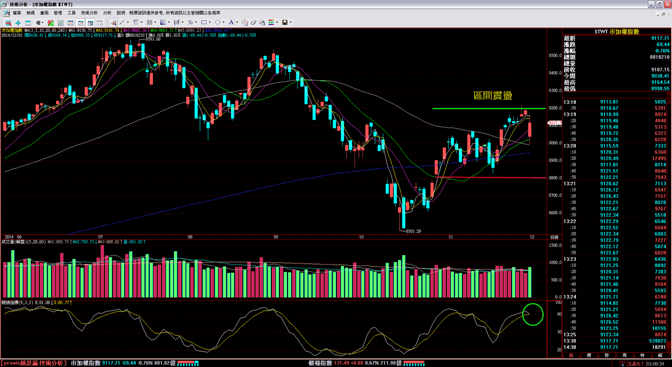 可是至少多頭終於在這一個8800~9200的箱型震盪區間中進行了表態